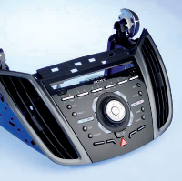 | 82 | Three Films, One Part and a Quartered MouldIn-Mold-Labeling – three-dimensionally molded films and two plastic components for a part measuring 380 x 250 x 50 mm. A project involving the radio/CD control panel for Ford C-Max placed high demands on the mouldmakers and film manufacturers. The result can now be seen in automobile showrooms. What can be done, if a project comes up that is slightly too large for one's own machine park? When Foliotec GmbH received an inquiry in April 2008 for the control fascia panel for the new Ford C-Max, it soon became clear that a part sized at 380 x 250 x 50 mm was well beyond the dimensions of any other part the company had previously refined with a film coating. |