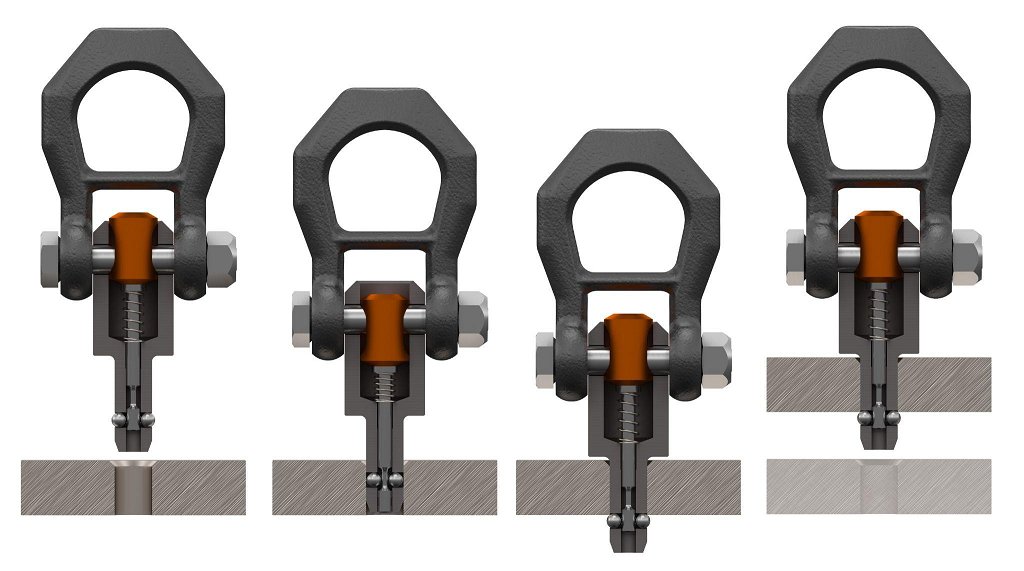 Toda, ali je takšna povezava enako varna kot vijačna? Jürgen Rothmund iz tehnične prodaje podjetja Erwin Halder KG pojasnjuje: »Naši bremenski sorniki so idealni za spoje, ki jih je treba pogosto odpirati. Uporabnik za sprostitev samozaklepnih kroglic le pritisne na rdeč potisni gumb pod zanko na koncu sornika. Nato lahko sornik enostavno vstavi v obstoječo izvrtino. Ko se gumb sprosti, se s pomočjo vzmeti vrne v prvotni položaj in samodejno zaklene kroglice. Tako dobimo varen in trden spoj v le nekaj sekundah, ki ga lahko enostavno razstavimo s pritiskom na gumb. Visokotrdni sorniki omogočajo izjemno nosilnost – do 1.000 kg, odvisno od modela, z do petkratno varnostjo. Visoko nosilnost je potrdil tudi nemški TÜV. Bremenski sorniki imajo še eno prednost: ko niso obremenjeni, jih je mogoče zavrteti za 360°, kar omogoča optimalno poravnavo zanke z usmeritvijo sile.«