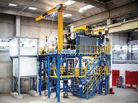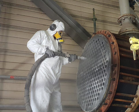 | 151 | A new dimension of mechanical cleaningThe exchanger shown here is used in a waste incineration plant for the condensation of hydrochloric acid from the incineration process. In the tubes (i.d. 32 mm) hydrochloric acid residues settle as soft adhesive and also solid substance. The strength of the residues is in some areas higher than the strength of the graphite pipe material. The possibilities of flushing cleaning by means of chemicals are not possible here. Mechanical cleaning, e.g. by high-pressure water processes, is hardly possible because the permissible pressure load on the pipes is very low. |