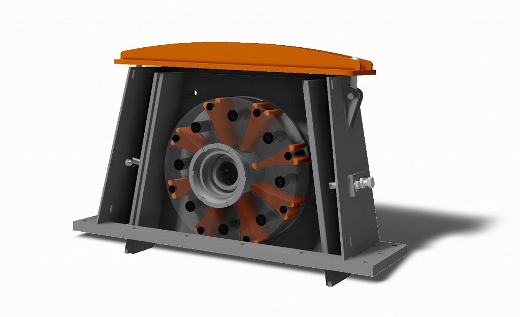 At the center of the modernization concept was the replacement of the two 22 kW turbines originally supplied with the shot blasting machine. The existing units were exchanged with high performance Gamma 400G-8 turbines in wear-resistant foundry version, also with a drive power of 22 kW each. They are equipped with eight curved throwing blades in „Y“-Design with a precisely calculated curvature. This generates an extremely high throwing speed along with a precise media guidance and results in an optimal efficiency. The unique characteristics of the Gamma turbines with a 45% higher blast performance allowed achieving the needed capacity increase.