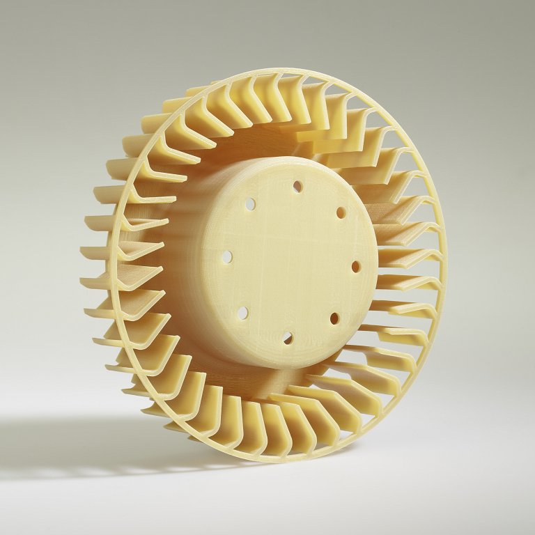 At Fakuma, a new high-temperature version of the Freeformer 750-3X will be producing geometrically sophisticated ventilation ducts from original material Ultem 9085. To achieve this, the temperature of the build chamber can be raised to 200 degrees Celsius, and the granules are plasticised at up to 450 degrees Celsius.