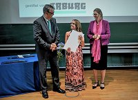 Since 2016, Arburg has been honouring outstanding dissertations and master's theses at the Technical University of Munich (TUM) as part of a close cooperation. In 2019, the Arburg Awards were presented to Dr.-Ing. Hannes Löwe and Maria Gabriele Bauer. As part of the “Day of the Faculty of Mechanical Engineering” at the TUM on 12 July 2019, Dr.-Ing. E. h. Herbert Kraibühler, former Arburg Technology Director and Honorary Doctor of the TUM, and Arburg Training Manager Michael Vieth presented the cash prizes and certificates to the two graduates.