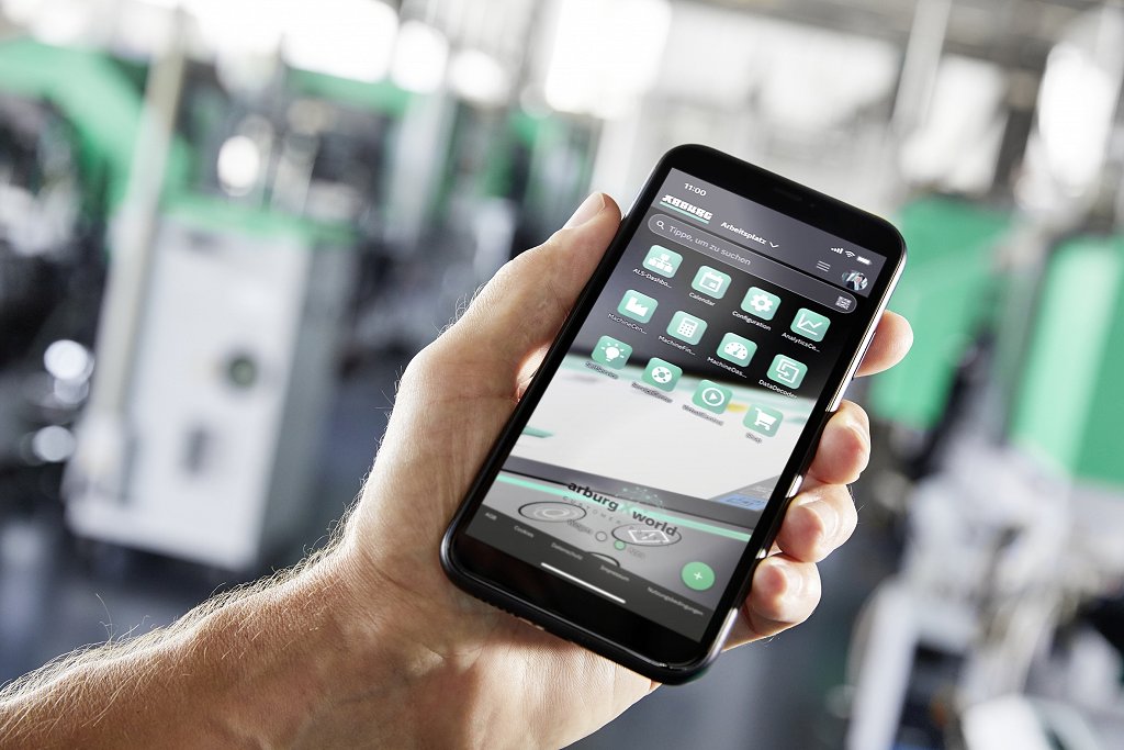 ARB00185420_iphone_Arbeitsplatz_arburgXworldThe customer portal „arburgXworld“ links customers with Arburg.
