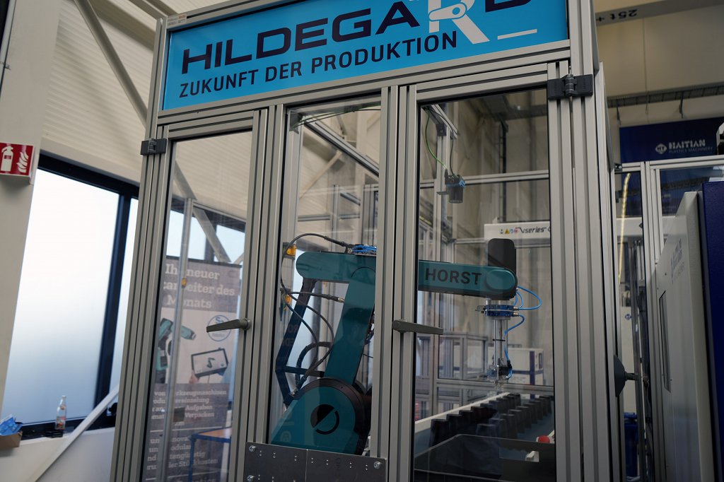 The Mars Series has proven its reliability and efficiency with over 400,000 units sold worldwide. At the Open House, drinking cups with a special crinkle design made of PP, colored using a Haitian color mixer were displayed. The mold from Gollmer Formen was equipped with cavity pressure sensors, monitored via Kistler’sComoNeo Box. The molded parts were removed from the mold by a Hilectro robot and subsequently handled by the Hildegard system of Haitians’ sales and service partner atr solutions in Germany.