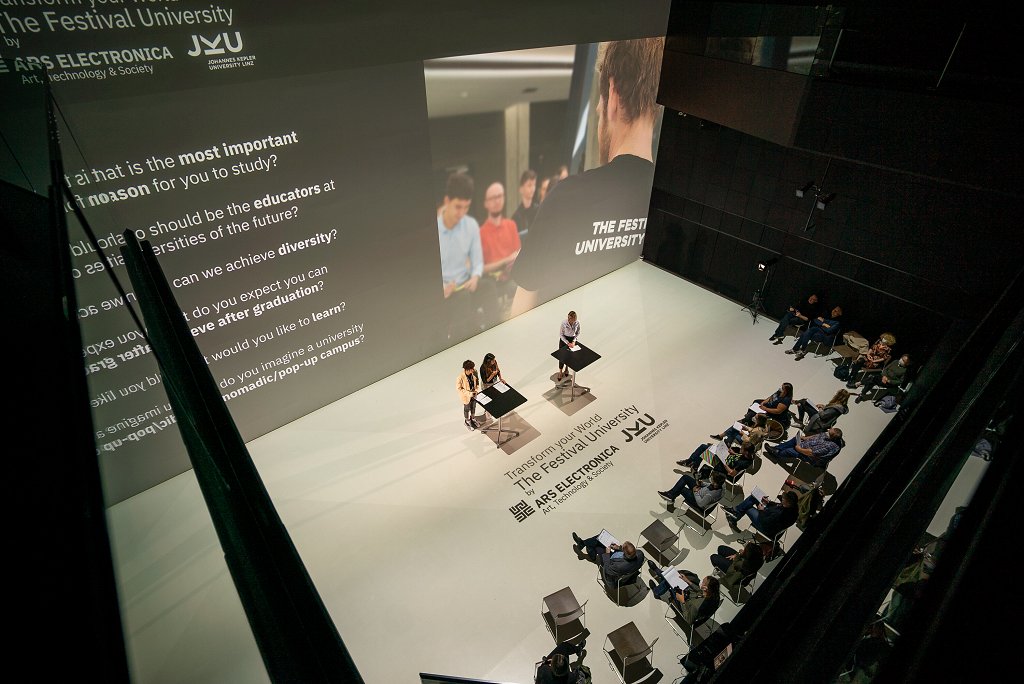 Prva mednarodna festivalska univerza, novi vizionarski skupni projekt je terenski preizkus in prototip prihodnosti visokega šolstva, ki impresivno prikazuje možnosti ustanovitve nove univerze v Zgornji Avstriji v 21. stoletju: »Ko se znanost in umetnost skupaj podata na pot odkrivanja, se pojavi neverjetna ustvarjalna sila. Tako sta JKU in Ars Electronica rodila prvo mednarodno festivalsko univerzo. Njun otrok je v zadnjih treh tednih zrasel in pridobil dragocene izkušnje, ki jih je vsekakor treba vključiti v načrtovanje in razvoj nove tehnične univerze v Zgornji Avstriji,« je pojasnil rektor JKU prof. dr. Meinhard Lukas. Dodal je še, da so za festivalsko univerzo med 230 kandidati izbrali 100 študentov iz 40 držav. Za skupno razmišljanje zunaj okvirov so podelili štipendije festivalske univerze študentkam in študentom iz držav, kot so Gvatemala, Vietnam, Črna gora, Japonska, Egipt, Avstrija, Nemčija in ZDA. »Njihova strokovna ozadja so raznolika in segajo od družboslovja in naravoslovja do umetnosti, podjetništva, prava in tehnologije.« Pod vodstvom mednarodno priznanih znanstvenikov, umetnikov in menedžerjev so v preteklih treh tednih doživeli vznemirljiv in inovativen program, ki je presegel disciplinarne meje ter združil nove tehnologije, znanost in umetnost z glavnimi družbenimi vprašanji našega časa.« Mentorstvo je izvajal tudi Joi Ito, japonski podjetnik in tvegani kapitalist, bivši direktor MIT Media Laba in bivši direktor Creative Commons.
