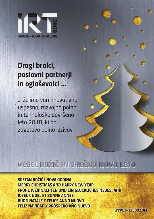 Vesel božič in srečno novo leto 2018 22.12.2017Dragi bralci, poslovni partnerji in oglaševalci...... želimo vam inovativno uspešno, razvojno polno in tehnološko dovršeno leto 2018, ki bo zagovoto polno izzivov. Ekipa IRT3000nazaj Share Tweet