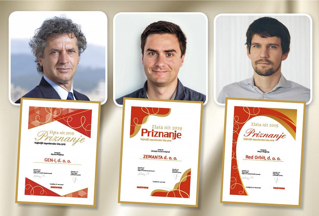 Družba Dnevnik je danes razglasila dobitnike priznanj najboljši zaposlovalec leta 2019. V kategoriji velikih podjetij ga je prejela družba GEN-I, v kategoriji srednje velikih podjetij Zemanta, v kategoriji malih podjetij pa Red Orbit. Zlata praksa gre v roke Pivovarni Laško Union.