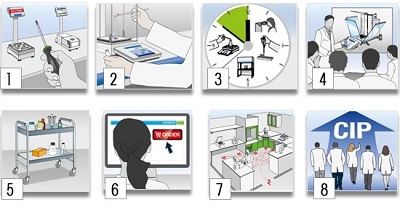 Z izboljšanjem učinkovitosti dela v laboratoriju z uporabo načel vitke organizacije lahko znatno izboljšate učinkovitost in si zagotovite visoko donosnost naložbe. Redno izvajajte preverjanja učinkovitosti v svojem laboratoriju z uporabo predloge »Kontrolni seznam za prepoznavanje osem vrst odpadkov«, ki jo ponuja METTLER TOLEDO.