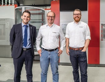 »Od leve proti desni: Benjamin Schuh iz podjetja HPV Hermle Vertriebs GmbH), Markus Gräf, vodja procesa razvoja in Bastian Girg, vodja trženja in komuniciranja, oba iz podjetja Werkzeugbau Siegfried Hofmann GmbH. Vir: Hermle