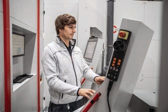 »Kevin Stark, operater sistema, je v podjetju Hofmann odgovoren za nastavljanje orodij in obdelovancev ter pregledovanje merilnih rezultatov. Vir: Hermle