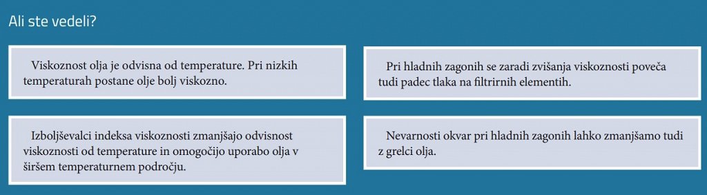 Viri: [1] Bennet Fitch, Noria Corporation. Overcoming the Risks of Cold Machine Starts. Dostopno na WWW: https://www.machinerylubrication. com/Articles/Print/30943 [25. 1. 2021]