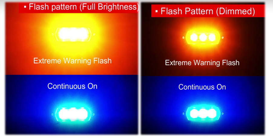 - Način delovanja bliskavice: trojna bliskavica, izjemna opozorilna bliskavica, neprekinjena osvetlitev in utripanje