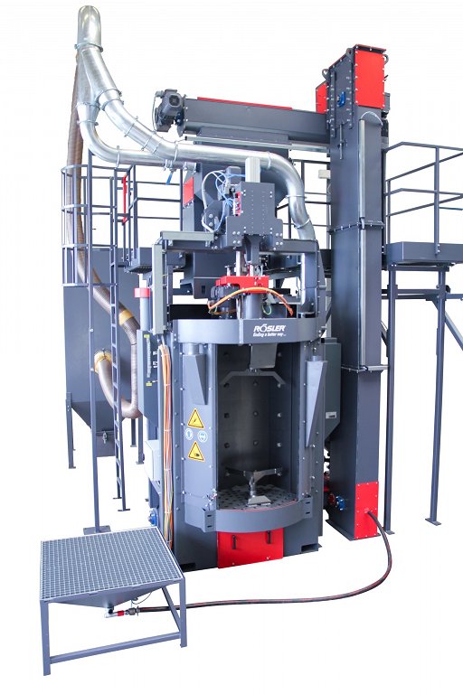 »Z visoko ravnjo avtomatizacije in konceptom dveh komor za peskanje predstavlja stroj za peskanje RWK 6/12-2 proizvajalca Rösler idealno rešitev za integracijo v medsebojno povezane proizvodne linije, ki zahtevajo kratke čase ciklov. | Vir: Rösler Oberflächentechnik