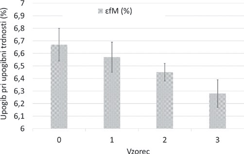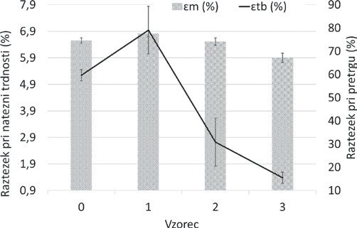 Slika 5: Raztezek pri natezni trdnosti in raztezek pri pretrgu