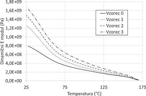 Slika 6: Dinamični E modul v odvisnosti od temperature