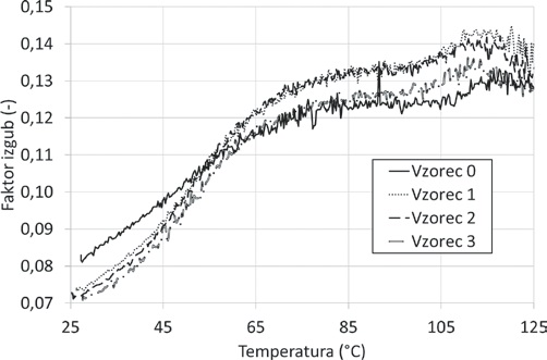 Slika 7: Faktor izgub v odvisnosti od temperature