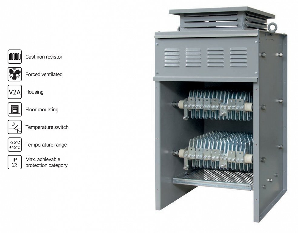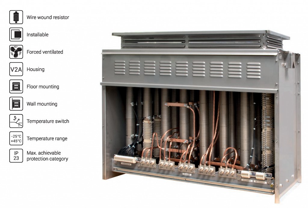 Velike prezračevalne reže na ohišju zagotavljajo optimalno hlajenje. Liti upori so vam na zahtevo na voljo tudi s toplotnim kontaktom in z naravnim ali prisilnim hlajenjem.