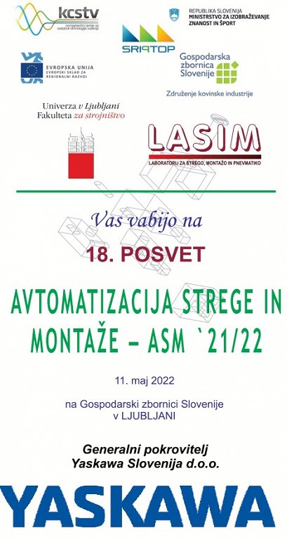 Letošnji tradicionalni posvet ASM '21/22, ki ga redno organizira Laboratorij LASIM, Fakulteta za strojništvo Univerze v Ljubljani v so-organizaciji z GZS in KCSTV, je že osemnajsti po vrsti. Je tudi edini strokovni posvet s področja avtomatizacije strege in montaže v Sloveniji, ki se ga, glede na izkušnje iz preteklih let, udeleži med 120 in 150 strokovnjakov iz industrije - večina iz Slovenije in tudi posamezniki iz tujine.