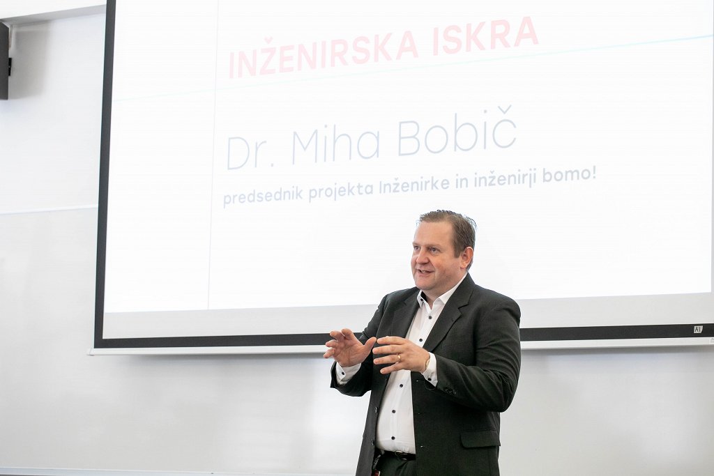 »Danes poklicni izumitelji izgledajo kot normalni ljudje, sebe pa imenujejo inženirji. In kaj je bolje kot biti poklicen izumitelj, vsak dan odkrivaš nove stvari, spreminjaš okolico okoli sebe na bolje, pomagaš vsem, ljudem, živalim, planetu. Ampak za to potrebuješ troje stvari: pogum, drznost in znanjeje v nagovoru prejemnike priznanj Inženirska iskra pozdravil dr. Miha Bobič iz podjetja Danfoss Trata, predsednik iniciative Inženirke in inženirji bomo!. Skupaj s prof. dr. Stanislavom Pejovnikom, glavnim tajnikom Inženirske akademije Slovenije, in Lukom Renkom, pobudnikom projekta Sledilnik, so letošnjim prejemnikom podelili priznanja.