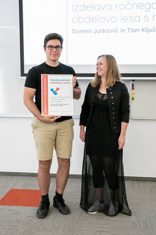 Priznanje Honourable mentions Gimnazija Vič, Ljubljana in podeljevalka Metka Škofic, urednica projekta Inženirke in inženirji bomo!Priznanje Honourable mentions Gimnazija Vič, Ljubljana in podeljevalka Metka Škofic, urednica projekta Inženirke in inženirji bomo!