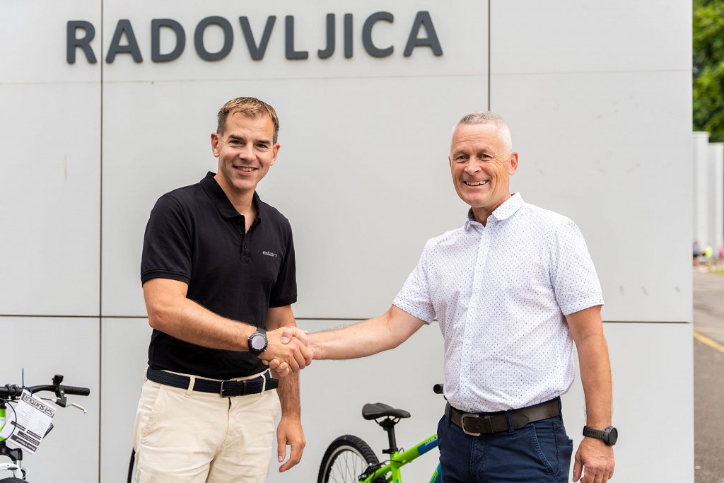 Podpredsednik skupine in direktor zimske divizije Elan Leon Korošec ter ravnatelj OŠ Radovljica Boris Mohorič