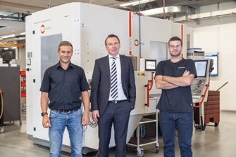 »Od leve proti desni: Flavio Bass, projektni vodja za mehaniko pri podjetju Hamilton, Christian Simon, regionalni vodja prodaje za Švico pri podjetju Hermle AG, in Luca Morell, vodja skupine frezanih delov pri podjetju Hamilton. Vir: Hermle