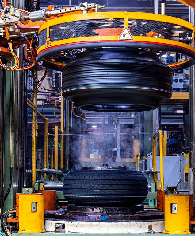 Pod pritiskom in vplivom toplote se v stiskalnici vulkanizira surovec in naredi avtoplašč-1Pod pritiskom in vplivom toplote se v stiskalnici vulkanizira surovec in naredi avtoplašč-2Pod pritiskom in vplivom toplote se v stiskalnici vulkanizira surovec in naredi avtoplašč