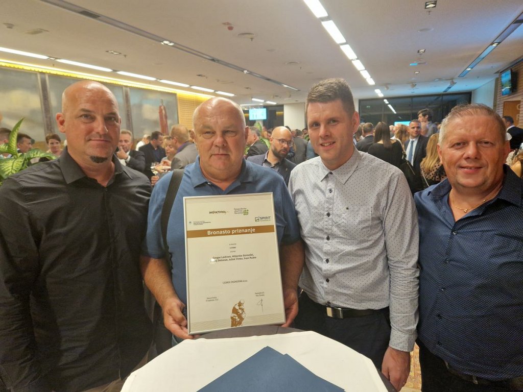 Ledinek je prejemnik bronastega priznanja Nacionalnih inovacij. Od leve proti desni so Jožek Vinko, Miljenko Strmečki, Matej Debeleak in Ivan Pulko