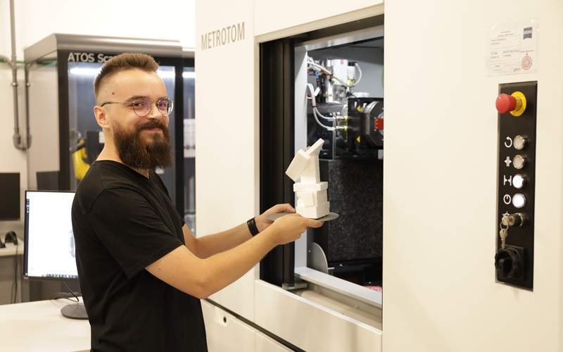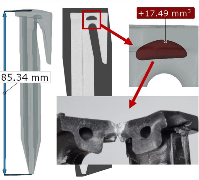 Omenjena naprava omogoča podrobno analizo polimernih in kovinskih izdelkov. Rezultati skeniranja vključujejo volumen in poligonalno mrežo trikotnikov, ki zagotavljajo celovit pogled v notranjost predmeta.