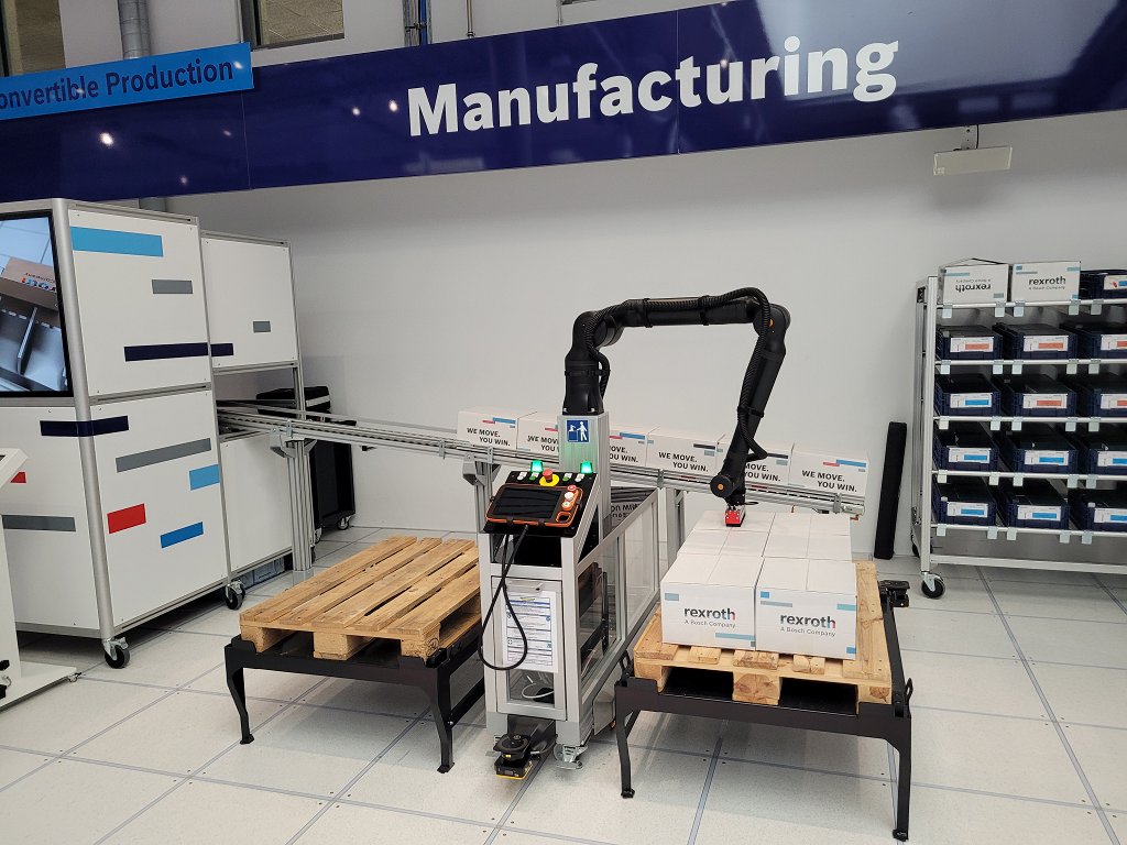 oplSlika 3: Predstavitev ene izmed rešitev dostave in sortiranja materiala v »izkustvenem centru Bosch Rexroth Ulm«.