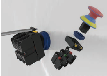 - Enostavna namestitev; inovativne higienske tipke so zgrajene iz osrednje matice za pritrditev glave in preprostega zaskočnega nosilca kontaktov, ki podpira do šest kontaktnih elementov (vključno s sistemom za vstavljanje). Modularna zasnova omogoča hitro in učinkovito montažo kot tudi maksimalno prilagodljivost in možnost za predhodno ožičenje. Nosilec kontaktov lahko enostavno razstavite z izvijačem.